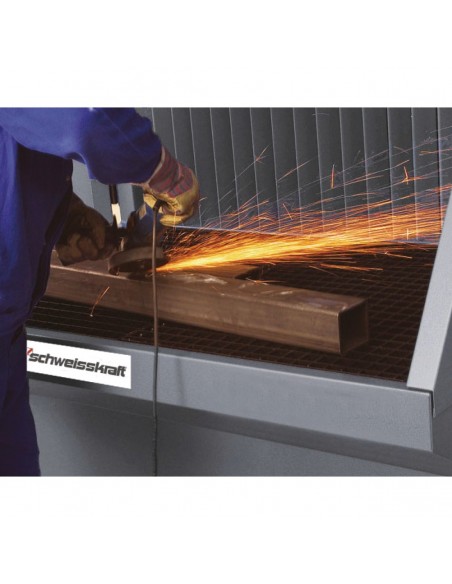 Solidny stół szlifierski z odciągiem powietrza z tylnej ściany i odchylanymi ścianami bocznymi