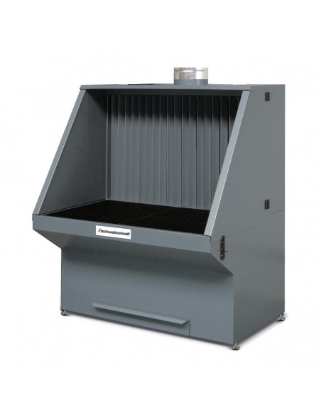 Solidny stół szlifierski z odciągiem powietrza z tylnej ściany i odchylanymi ścianami bocznymi