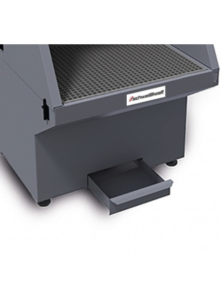Solidny stół szlifierski z odciągiem powietrza z tylnej ściany i odchylanymi ścianami bocznymi