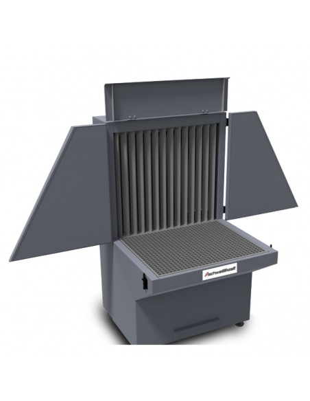 Solidny stół szlifierski z odciągiem powietrza z tylnej ściany i odchylanymi ścianami bocznymi