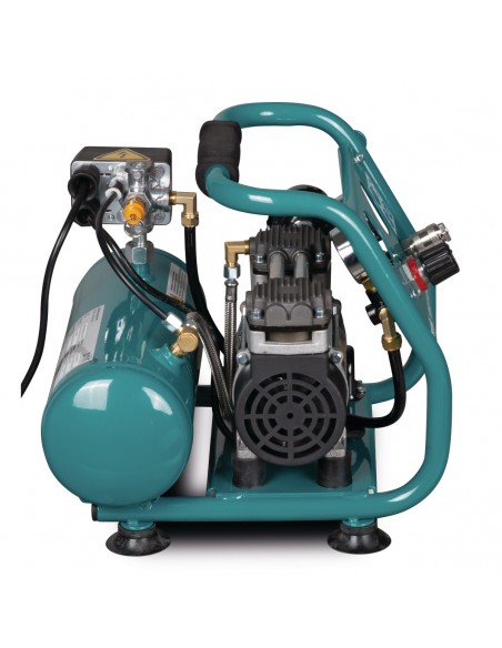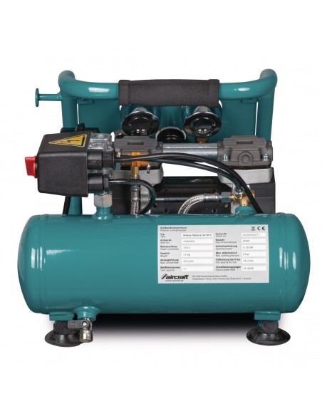 - Bezolejowa sprężarka tłokowa, dzięki czemu nie wymaga wymiany oleju i nie pozostawia oleju w kondensacie