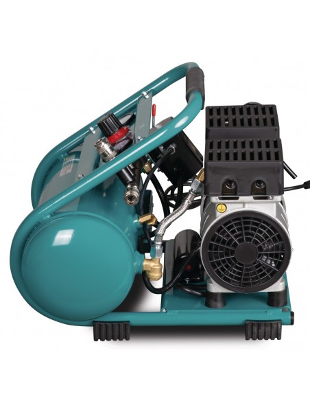 - Bezolejowa sprężarka tłokowa, dzięki czemu nie wymaga wymiany oleju i nie pozostawia oleju w kondensacie
