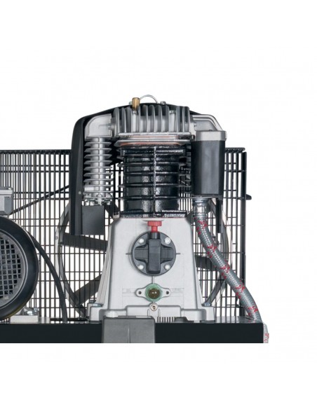 - Chłodnica końcowa z dużymi żebrami chłodzącymi powoduje niską temperaturę na wlocie do kotła i mniejszą wilgotność sprężonego powietrza w celu ochrony narzędzi pneumatycznych