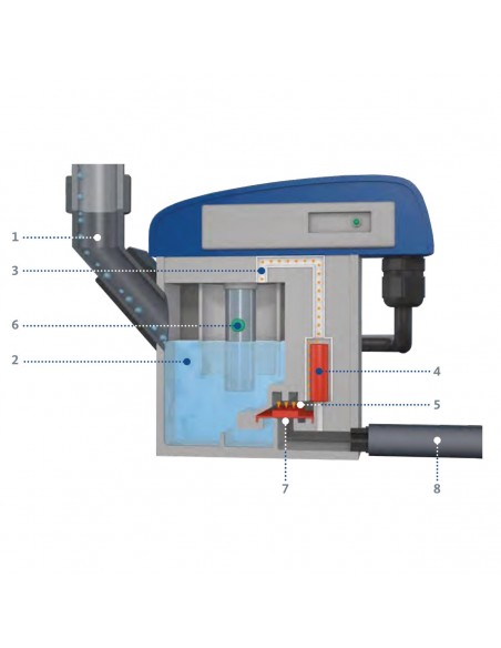 - Czujnik pojemnościowy wykrywa poziom kondensatu. Przy maksymalnym poziomie otwiera się membrana, przez którą kondensat jest odprowadzany poprzez ciśnienie w układzie.