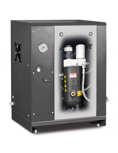 Sprężarki śrubowe z napędem pasowym w obudowie dźwiękochłonnej. Do pracy ciągłej również przy mniejszym zapotrzebowaniu na sprężone powietrze.