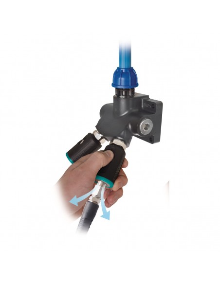 - Za naciśnięciem przycisku ciśnienie zostaje zredukowane, za kolejnym naciśnięciem systemy sprężonego powietrza i narzędzia zostają bezpiecznie rozdzielone