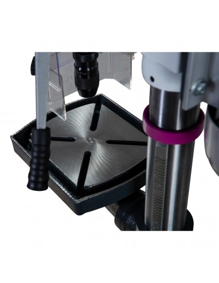 - Precyzyjnie obrobiony, stabilny stół wiertarski z ukośnymi rowkami teowymi i obwodowym kanałem wody chłodzącej