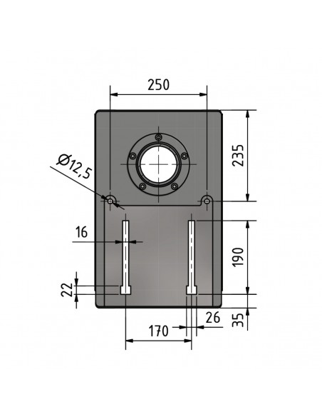 - Masywny, masywna, duża płyta podstawowa z rowkami teowymi, mocno użebrowana na grzbiecie