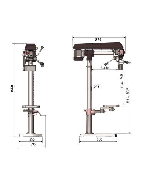 - Precyzyjnie obrobiony stół wiertarski z otworami montażowymi dla powiększonego podparcia stołu wiertarskiego