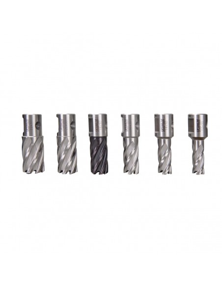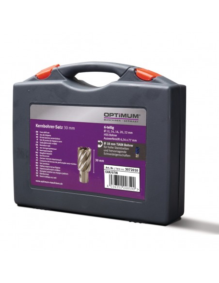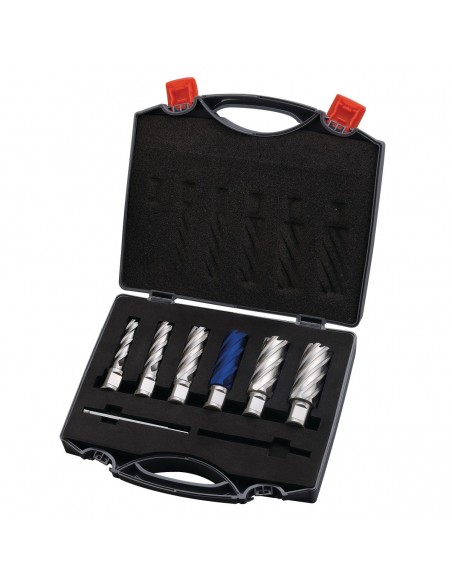 Pięć wierteł rdzeniowych HSS i jedno TiAlN w praktycznej walizce z tworzywa sztucznego