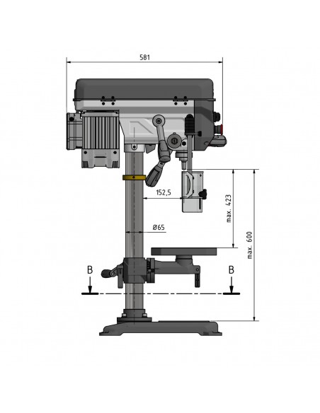 Niedroga wiertarka stołowa z napędem pasem klinowym i mechaniczną, bezstopniową regulacją prędkości obrotowej