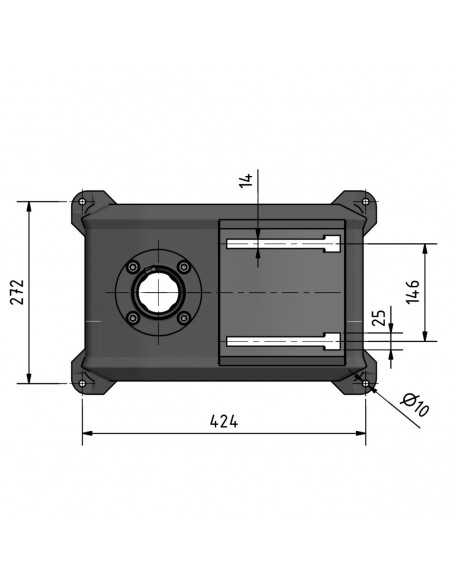 - Precyzyjnie obrobiony, stabilny stół wiertarski z 2 ukośnie biegnącymi rowkami teowymi i obwodową rynną chłodzącą