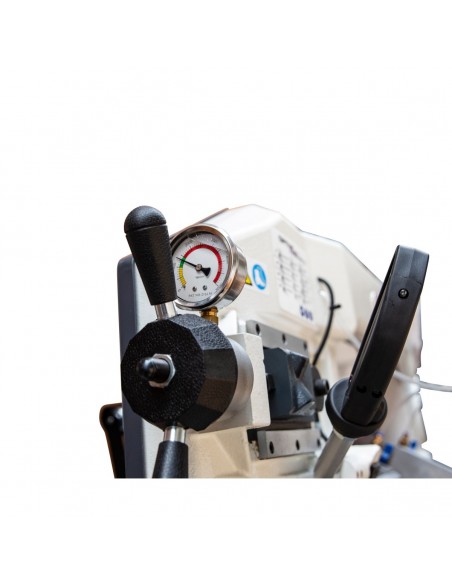 Dwukanałowy łańcuch zabezpieczający z szybkim zatrzymaniem w przypadku awaryjnego zatrzymaniaPłynnie regulowana prędkość obrotowa tarczy pilarskiej Zmieniana za pomocą przetwornicy częstotliwości Profesjonalna technologia falownikowa Wysoka moc silnika również przy niskich prędkościach obrotowych Mikrowyłącznik do automatycznego wyłączania krańcowego Precyzyjna, regulowana i trwała prowadnica brzeszczotu Zatrzymanie końcowe regulowane co do stopnia Szczotka do wiórów Pompa płynu chłodzącego Szybkie imadło zaciskowe regulowane pokrętłem. Mocowanie detalu za pomocą poręcznej dźwigni szybkiego mocowania Stabilna podstawa maszyny Obsługa upraszcza ustawienia maszyny Kompletnie wyposażona, umożliwia użytkownikowi produktywną pracę natychmiast po uruchomieniu Przetwornica