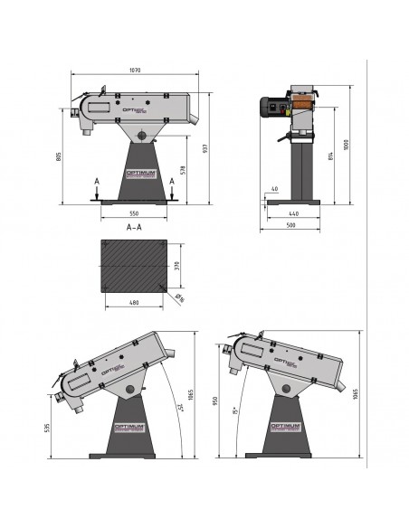 - Stół szlifierski można przechylać o 22° - 50°