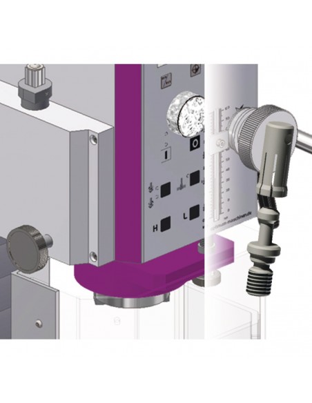 - Przycisk obrotowy w panelu sterującym do ustawiania głębokości wiercenia opcjonalnie w mm lub calach i punktu zerowego