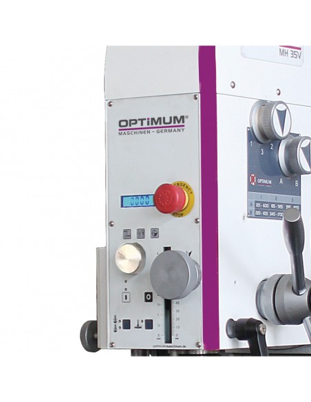 Uniwersalne precyzyjne wiertarko-frezarki z ręczną przekładnią. MH 35V z elektronicznie sterowanym napędem. Jednostka sterująca z odporną na zabrudzenia i wodę klawiaturą membranową