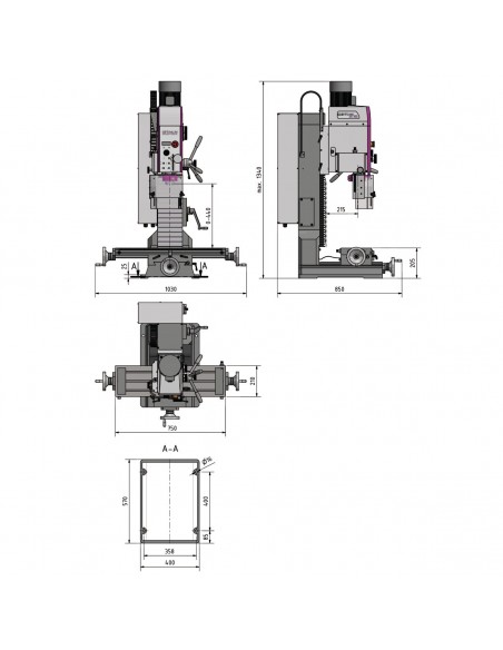 - Ciężka, stabilna i solidna kolumna, wykonana z wysokiej jakości żeliwa szarego, ze szlifowaną i skrobaną prowadnicą na jaskółczy ogon, dla wysokiej stabilności i precyzji