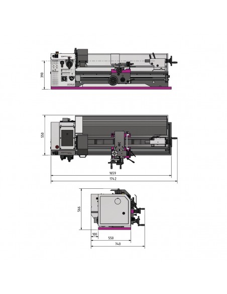 - Koła ręczne na suporcie z regulowaną dokładną skalą 0,04 / 0,01 mm