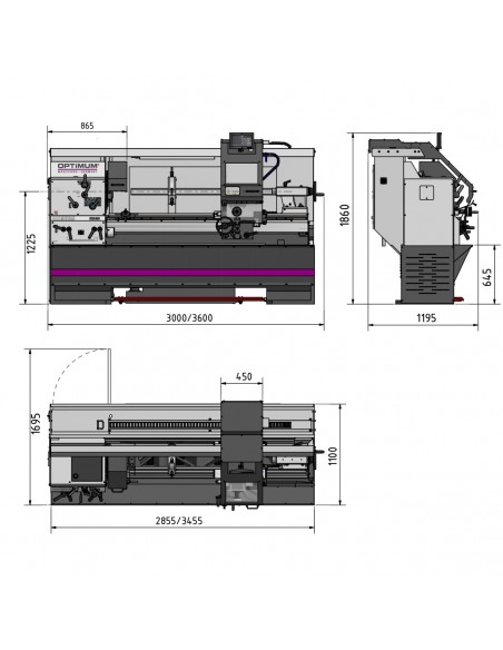 - Zabezpieczenie przed wiórami przesuwane wraz z prowadnicą łoża ze zintegrowanym wskaźnikiem położenia i wężem chłodziwa, przesuwana ręcznie