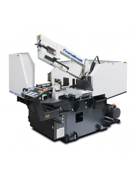 - Hydraulicznie sterowany system dla obu imadeł, ruch posuwu materiału oraz ruch ramienia piły w górę i w dół