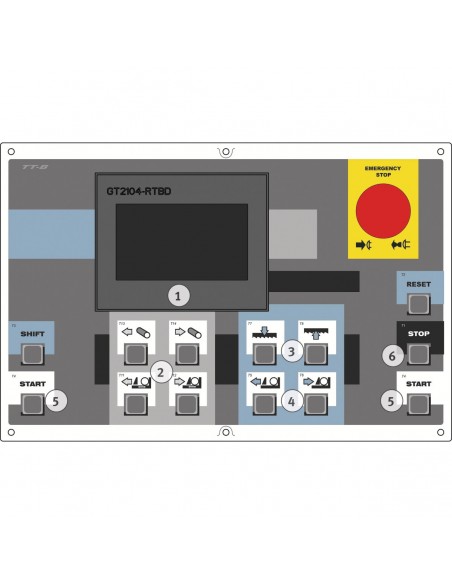 - Szczęki obu imadeł są standardowo wyposażone w siłowniki hydrauliczne o dużym skoku, co eliminuje konieczność wstępnego ustawiania ich do przekroju materiału, który ma być cięty.