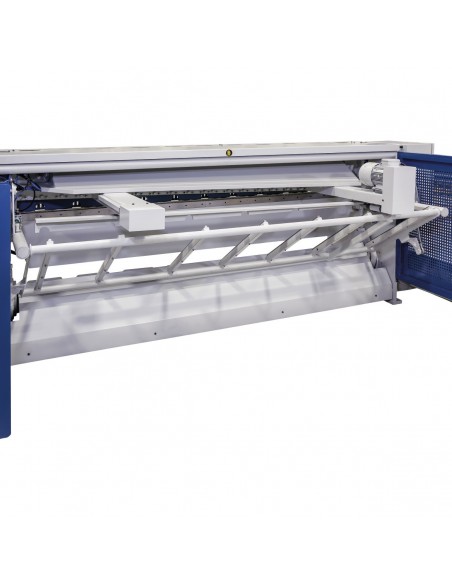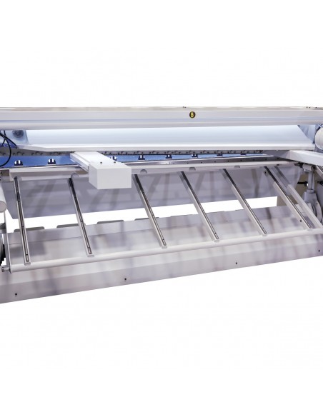 - Przymiar tylny 750 mm prowadzony na wałkach okrągłych i napędzany przez śrubę kulową