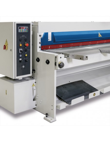 - Przymiar tylny 750 mm prowadzony na wałkach okrągłych i napędzany przez śrubę kulową