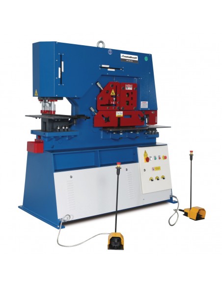 - Seria DS z dwoma siłownikami roboczymi i dwoma pedałami nożnymi do jednoczesnej pracy ze stacją dziurkującą i nożycami do cięcia stali profilowej