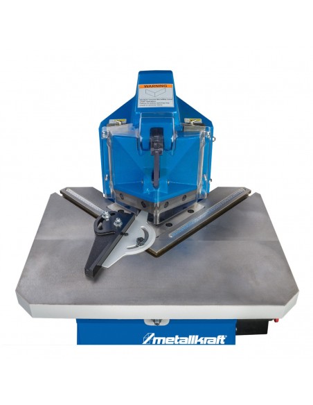- Masywny stół z wpuszczonymi liniałami i rowkami teowymi do precyzyjnego ustawiania odchylanych ograniczników