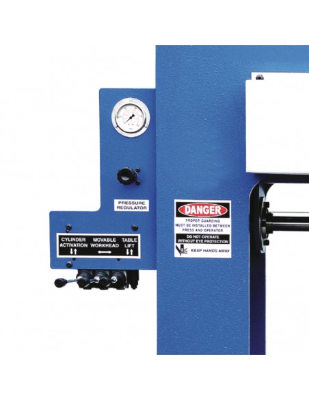 - Hydrauliczne sterowanie skokiem i ruchem cylindra w prawo/w lewo oraz regulacją wysokości stołu