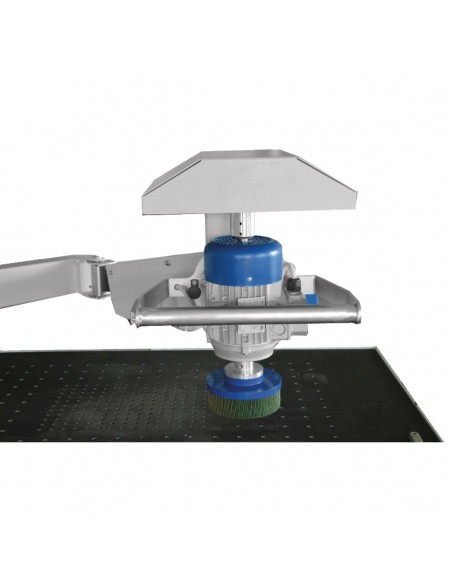 - Głowica robocza może być wyposażona w dwa narzędzia, np. ściernicę i szczotki, wymiana narzędzi podczas obróbki poprzez obrót głowicy o 180°