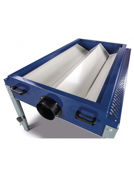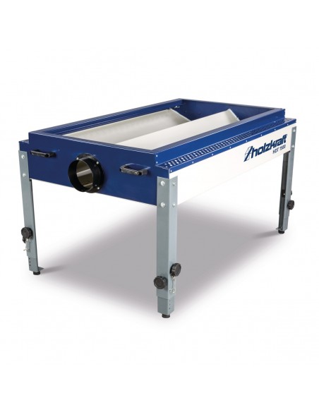 - Praktyczne odsysanie w dół zapobiega cyrkulacji wiórów i pyłu w miejscu pracy i w warsztacie