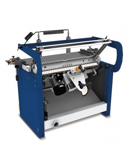- Podwójnie prowadzone żeliwne ograniczniki boczne precyzyjnie ustawiane za pomocą koła obrotowego z licznikiem
