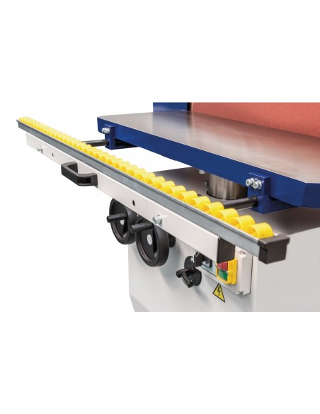 - Stół szlifierski z regulacją wysokości dla wykorzystania całej szerokości taśmy szlifierskiej