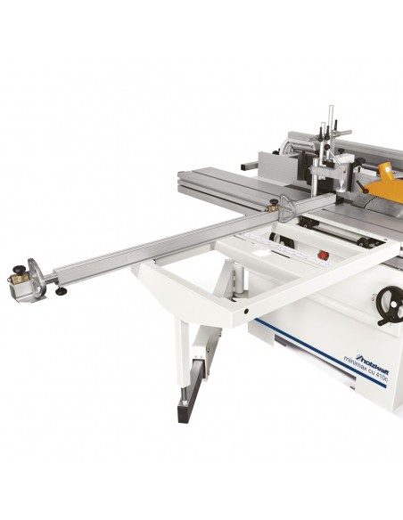 - z regulowaną pod kątem teleskopową przykładnicą do cięcia poprzecznego z dwoma profesjonalnymi przykładnicami składanymi