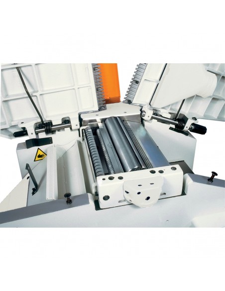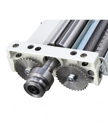 - Wielozębny stalowy wałek posuwowy zapewniający równomierny posuw materiału