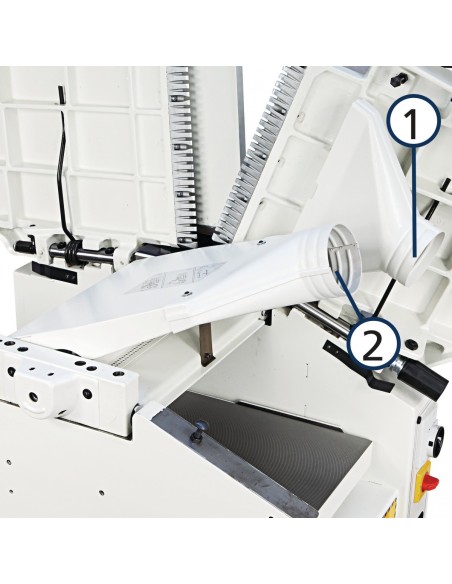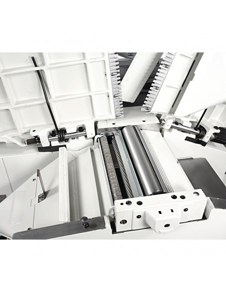 - Mocno użebrowane stoły robocze z odpornego na naprężenia żeliwa szarego dla długich lat stabilności. 2-stopniowy posuw do strugania grubościowego