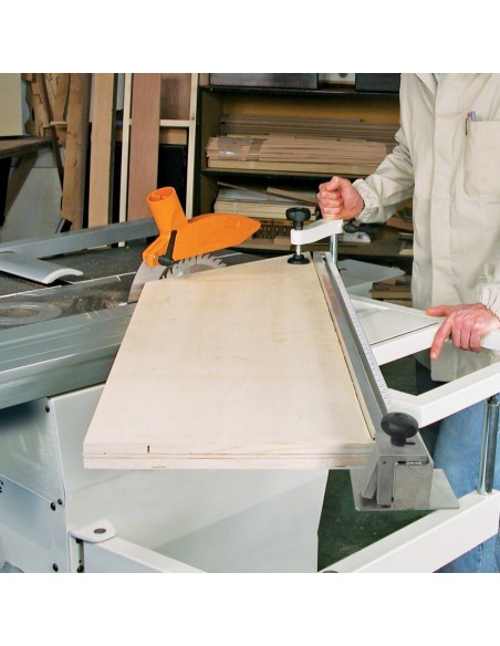 - Rama obcinająca z aluminiową przykładnicą poprzeczną i regulowanymi szczękami oporowymi do płyt i dużych elementów
