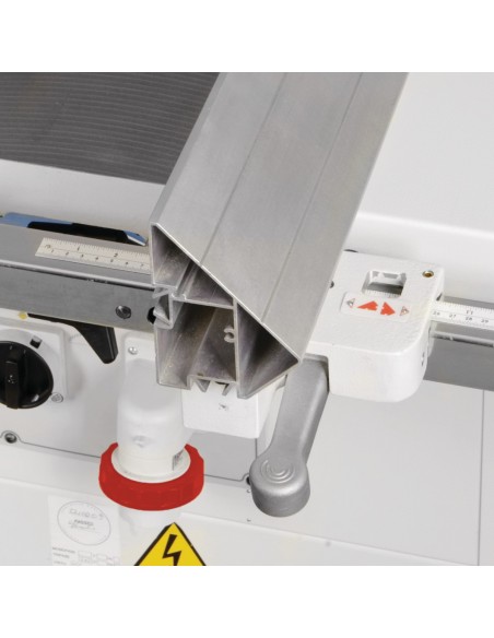 - Stół roboczy wykonany z mocno użebrowanego żeliwa szarego oraz spawana rama stalowa gwarantują sztywność skrętną i pracę bez wibracji