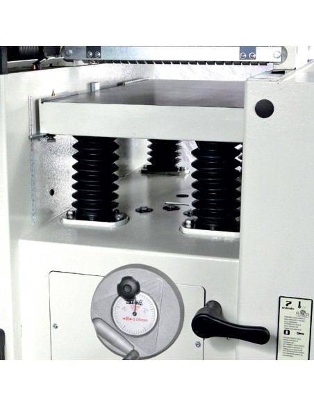 - Regulacja stołu grubościowego płaszczyzny za pomocą koła ręcznego z wyświetlaczem numerycznym wysokości płaszczyzny
