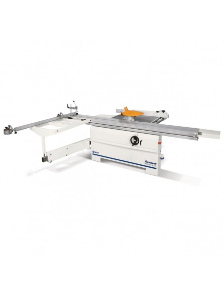 Z odchylaną tarczą pilarską i wózkiem przesuwnym z anodowanego aluminium