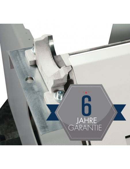 - Płynnie i precyzyjnie pracujący wózek przesuwny z anodowanego aluminium ze sprawdzonym i trwale płynnym systemem styków kulkowych na szynach prowadzących z hartowanej stali, 10 lat gwarancji na zużycie prowadnic