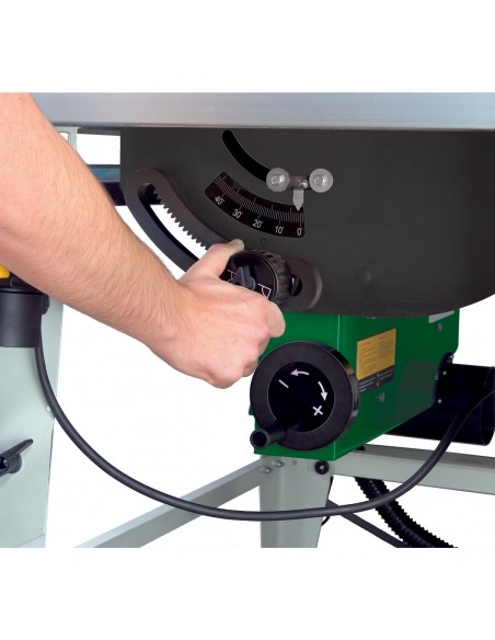 - Regulacja wysokości tarczy piły za pomocą łatwo dostępnego koła ręcznego