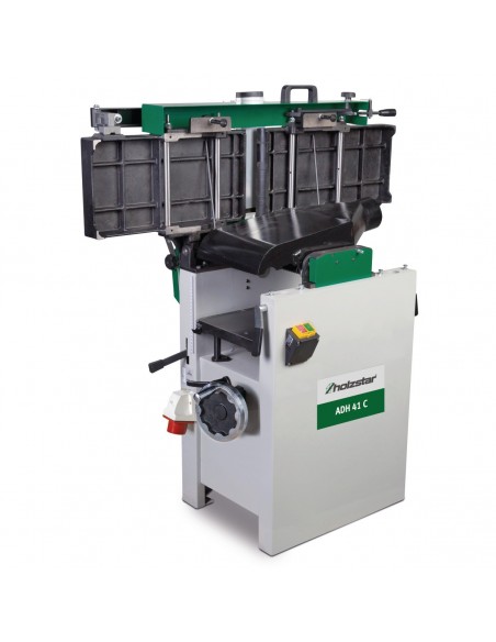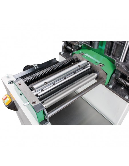 - Równoczesne składanie stołów z podporą sprężynową do szybkiego i łatwego przezbrojenia na struganie grubościowe w ciągu kilku sekund