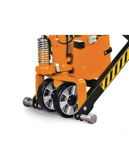 - Dodatkowa możliwość jazdy dzięki aluminiowym kółkom i rolkom wideł z bieżnikami z pełnej gumy pokrytej poliuretanem