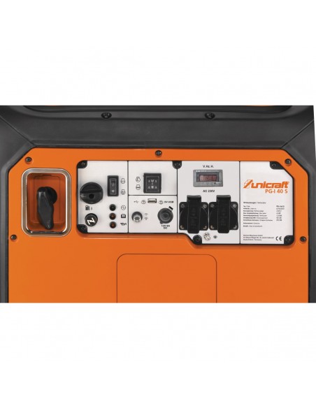- Lampki sygnalizacyjne napięcia wyjściowego, napięcia wyjściowego, przeciążenia i braku oleju