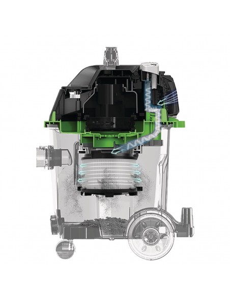 - Ręczne czyszczenie filtra zapewniające czyste filtry i niezmiennie wysoką moc ssania
