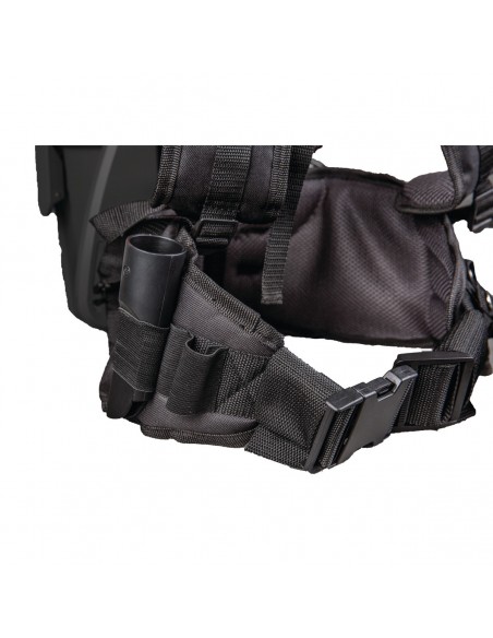 - Z wyściełanymi i składanymi paskami, uchwytami na akcesoria i włącznikiem/wyłącznikiem bezpośrednio na pasku