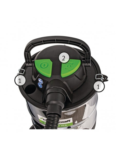 - Do opróżniania zbiornika, głowicę odkurzacza można łatwo zdjąć po otwarciu zatrzasków