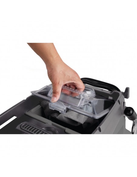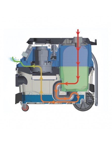 - Czysty przepływ powietrza dzięki potrójnej filtracji przez worek filtracyjny, filtr wodny i filtr HEPA